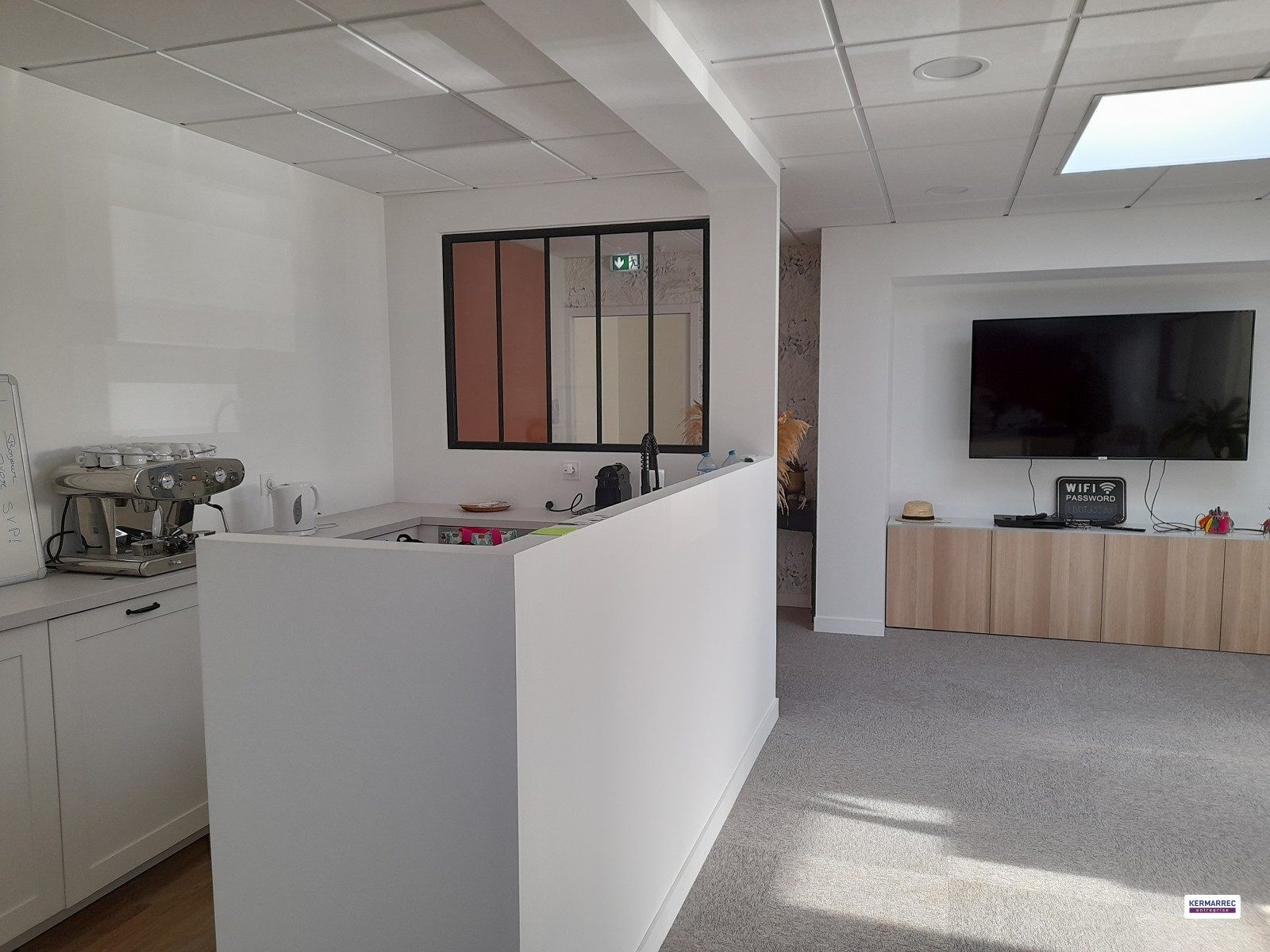 KERMARREC Entreprise RENNES vous propose à l'Ouest de Rennes, accès rapide à l'axe majeur 2 X 2 voies RN 12, au sein d'un parc d'activités sécurisé, une cellule d'activités d'environ 200 m² développées, une surface de bureaux, salle de réunion, d'environ 100 m² et une surface de réserve d'environ 100 m² accessible par une porte sectionnelle. Le tout édifié sur un parc aménagé, stationnements et clos par un portail.