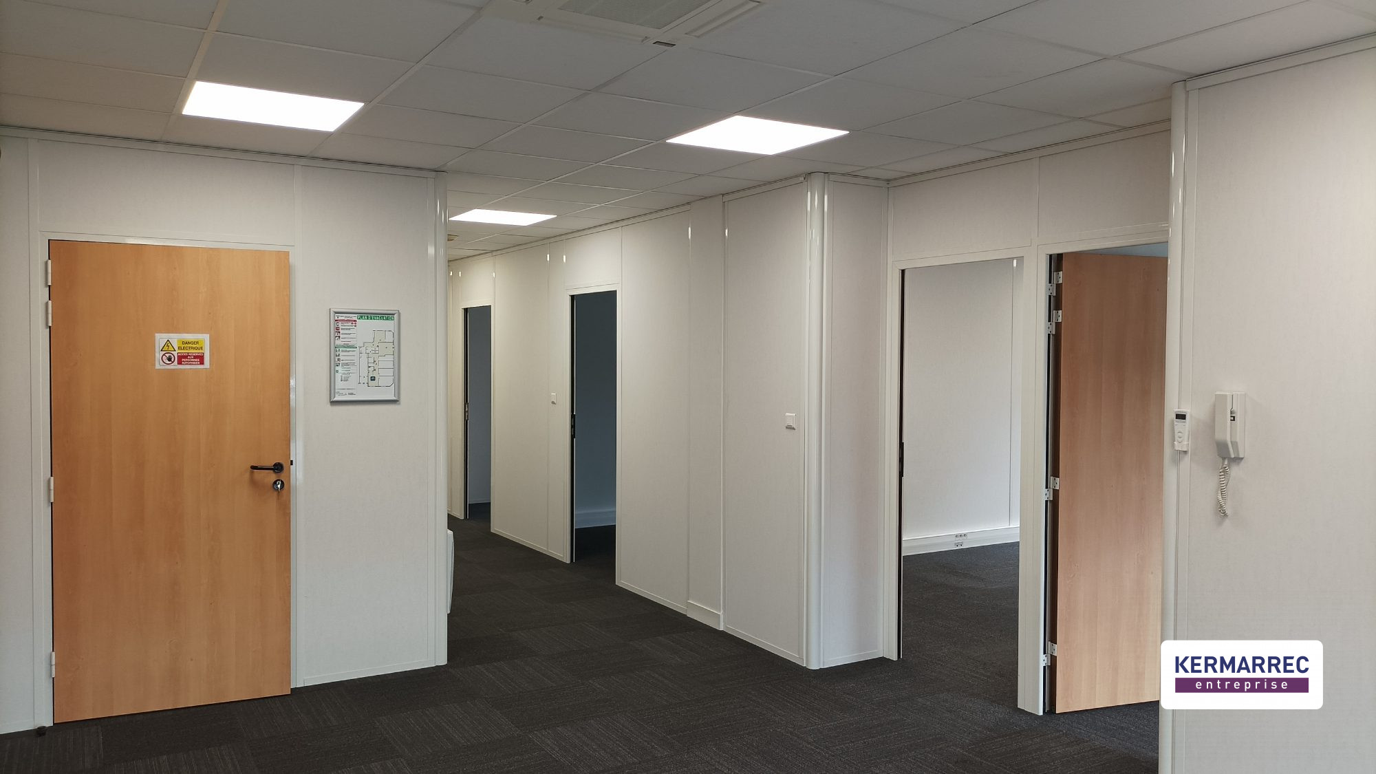 Les locaux sont climatisés, fibrés, sécurisés, modulaires et lumineux. stores électriques, éclairage LED.