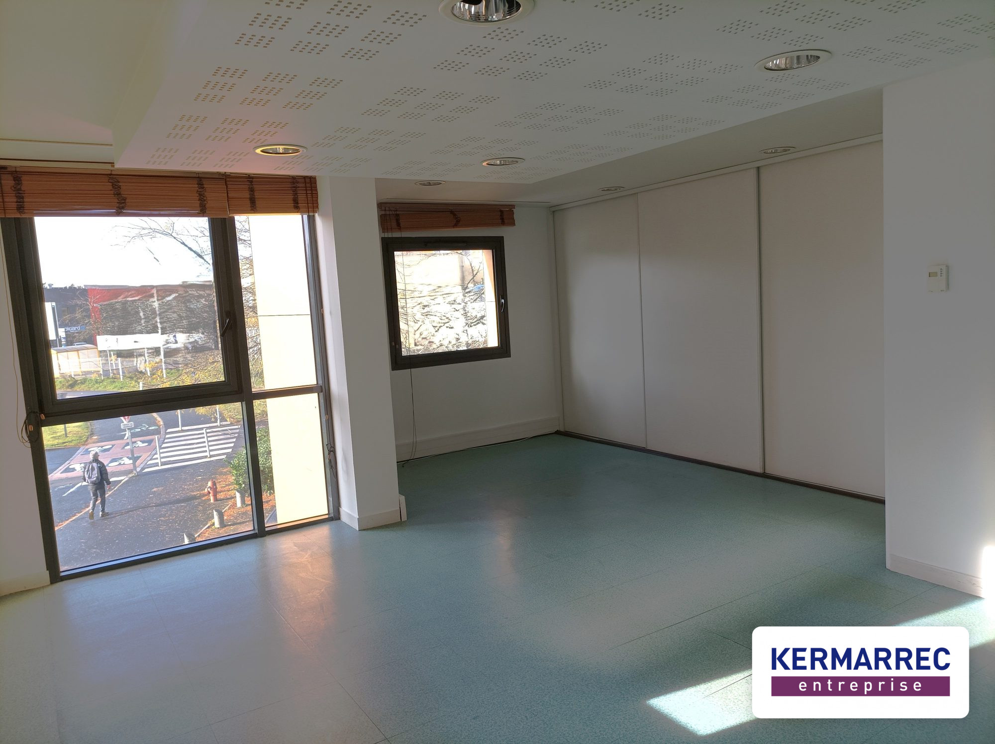 Dans la zone commerciale du Cardo, au pied du tramway, axe stratégique entre Rennes et le périphérique Nantais. Cette surface est située au R+1, dans un immeuble tertiaire et est composée de : une entrée avec open space, 3 grands bureaux fermés, un coin kitchenette et un sanitaire.