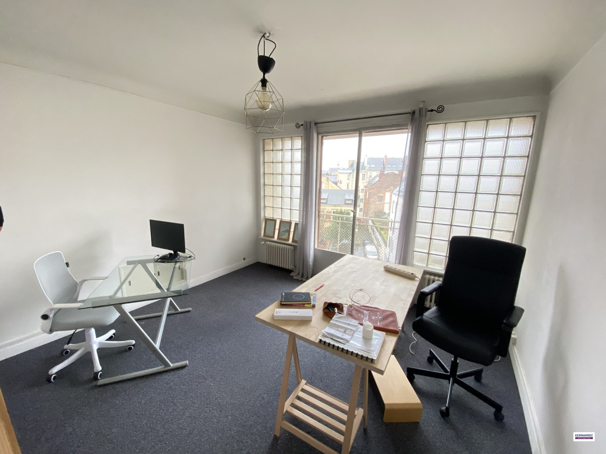 Cette surface au 4ème étage d'un immeuble mixte avec ascenseur. Locaux très lumineux, 3 bureaux, un espace kitchenette, WC et débarras.