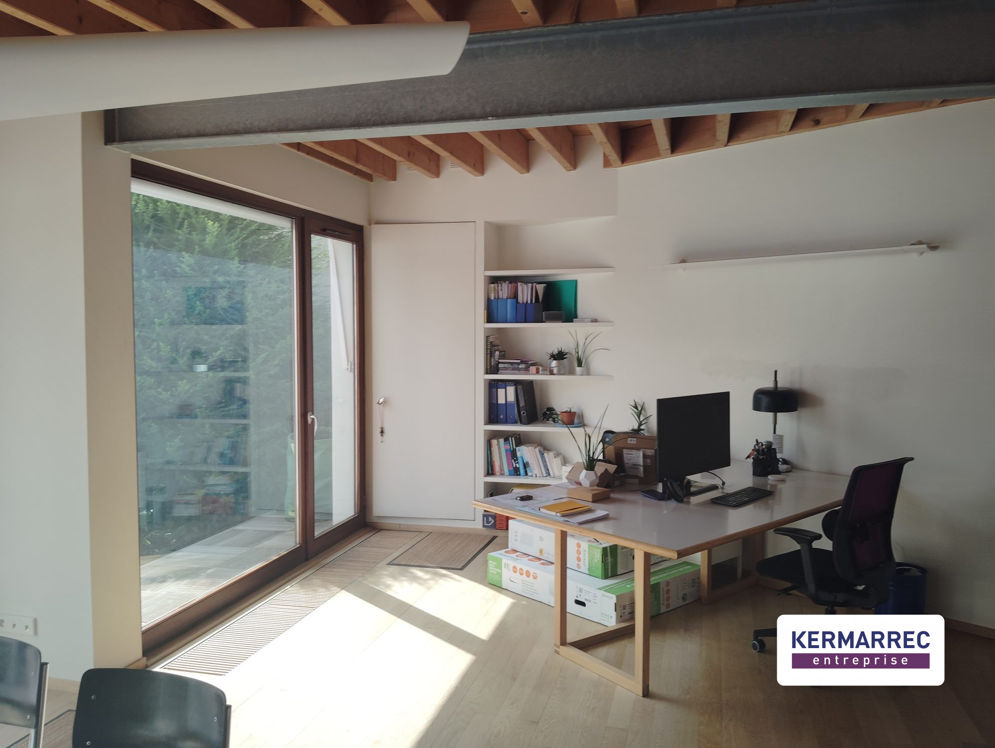 Ces locaux se composent de plusieurs bureaux fermés, d'un open space, d'un garage, ainsi qu'un espace dédié à l'archivage. Vous bénéficierez également d'un terrain privatif d'environ 200 m², offrant un cadre de travail agréable, au calme et dans un environnement verdoyant.